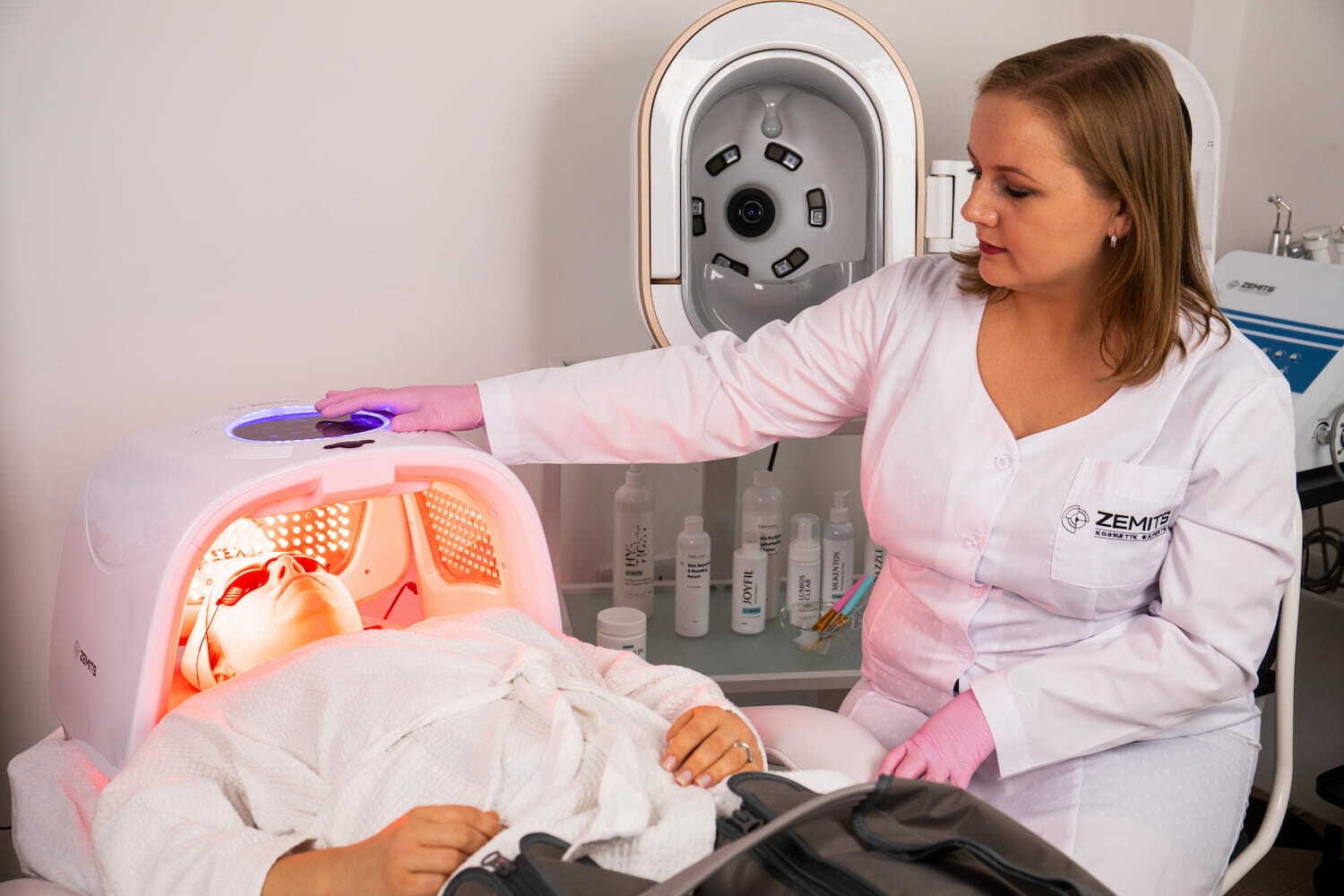 Красный – 640 нм. Уменьшает морщины и стимулирует выработку нового коллагена, подтягивает и тонизирует. Улучшает кровообращение и оксигенацию клеток, возвращает коже здоровый, сияющий вид.