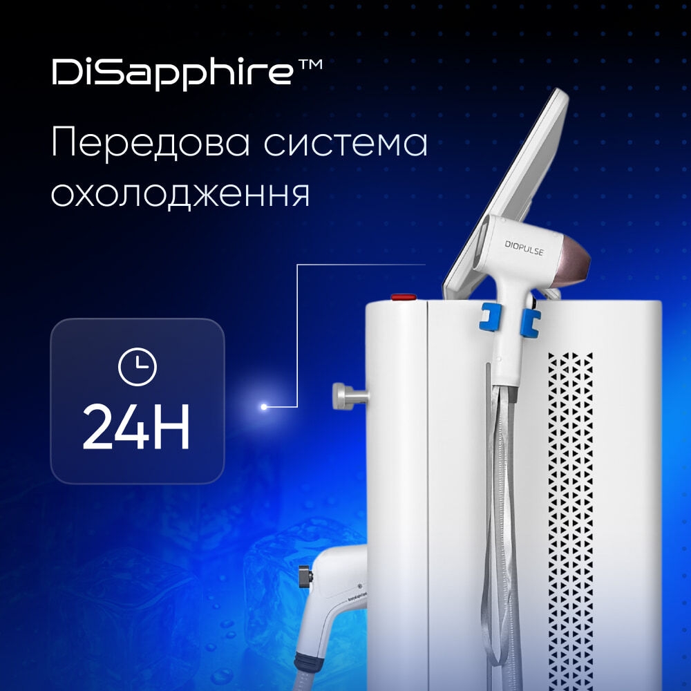 Прогресивна система DiSapphire гарантує ефективне охолодження маніпули. В моменти активації лазера охолоджувальний ефект посилюється, що допомагає зменшити дискомфорт та забезпечує зручність під час процедур, навіть при високих налаштуваннях.