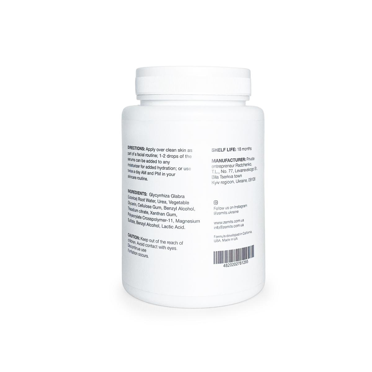 ЕКСТРАКТ КОРЕНЯ СОЛОДКИ, СЕЧОВИНА, РОСЛИННИЙ ГЛІЦЕРИН, ЦЕЛЮЛОЗНА КАМЕДЬ, БЕНЗИЛОВИЙ СПИРТ, ЦИТРАТ НАТРІЮ, КСАНТАНОВА КАМЕДЬ, ПОЛІАКРИЛАТНИЙ КРОСПОЛІМЕР-11, СУЛЬФАТ МАГНІЮ, МОЛОЧНА КИСЛОТА
